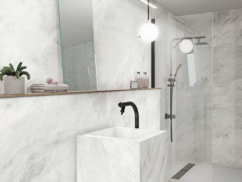 Элементы коллекции Alexandria имеют один вид поверхности – матовую – и предлагаются в одном формате: 60×120 см, который имеет фактуру мрамора. Керамогранит из коллекции Alexandria может быть использован для ванной, для гостиной, для коридора, для кухни, для пола и для стен.