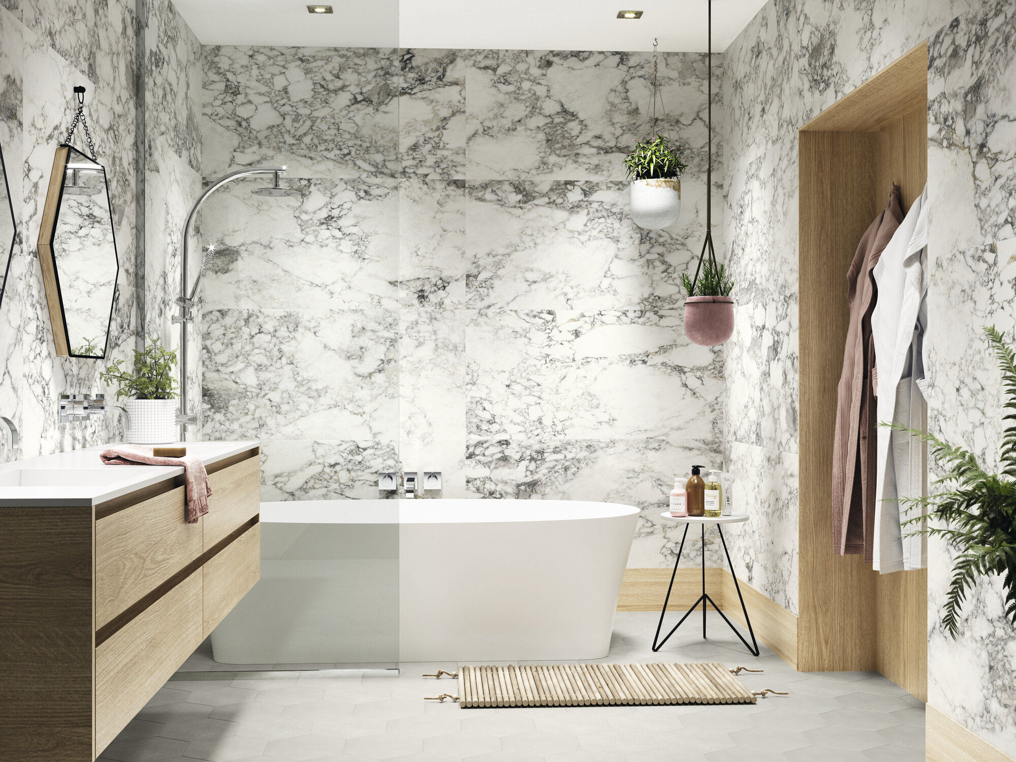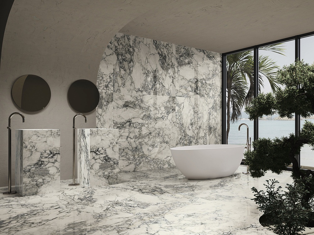 Элементы коллекции Volterra имеют один вид поверхности – матовую – и предлагаются в одном формате: 60×120 см, который имеет фактуру мрамора. Керамогранит из коллекции Volterra может быть использован для ванной, для гостиной, для коридора, для кухни, для пола и для стен.