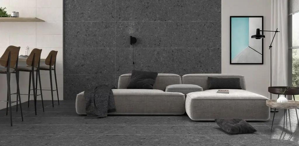 Элементы коллекции Flodsten имеют один вид поверхности – матовую – и предлагаются в одном формате: 60×120 см, который имеет фактуру терраццо. Керамогранит из коллекции Flodsten может быть использован для ванной, для гостиной, для коридора, для кухни, для пола, для стен и для улицы.