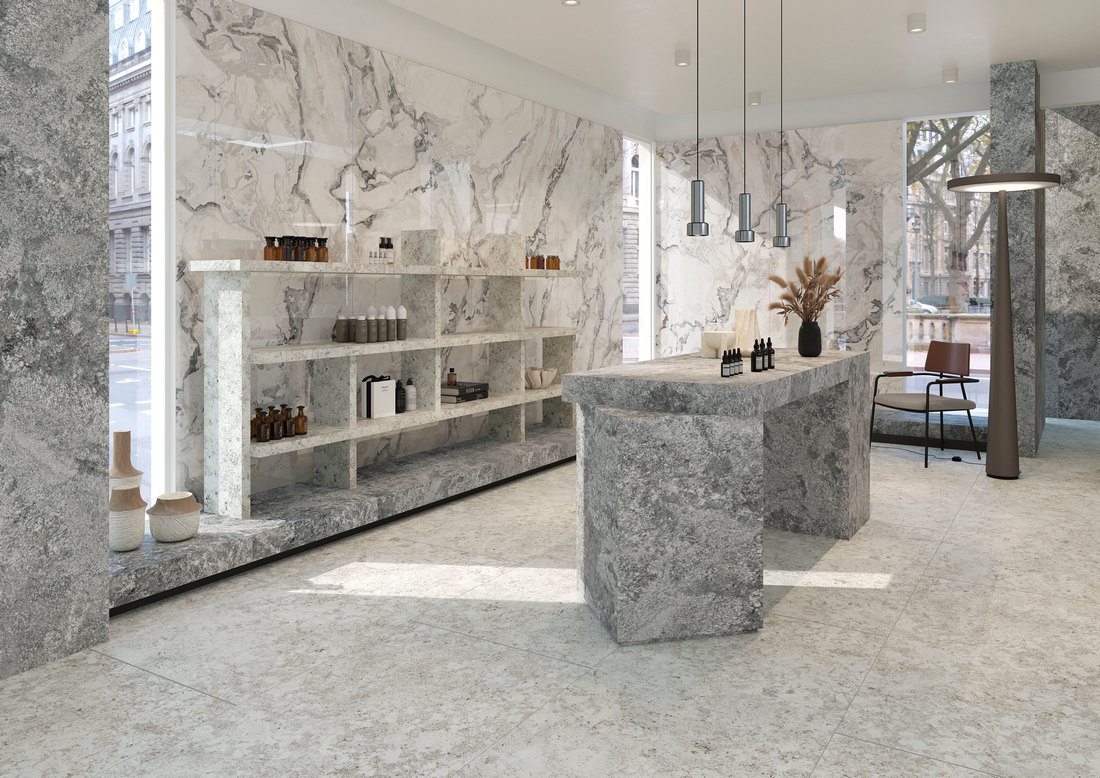 Элементы коллекции Forte Dei Marmi Quark имеют два вида поверхности – матовую и полированную – и предлагаются в четырёх форматах: 120×120 см, 80×160 см, 60×120 см и 120×278 см, которые имеют фактуру камня и мрамора. Керамогранит из коллекции Forte Dei Marmi Quark может быть использован для ванной, для гостиной, для коридора, для кухни, для пола, для стен, для улицы и для фасада.