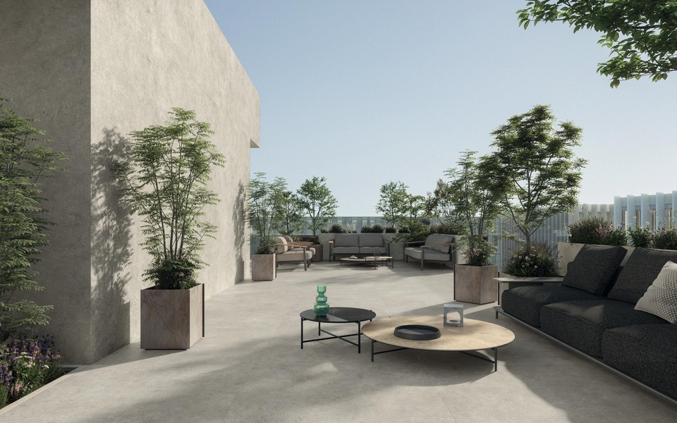 Элементы коллекции Boost Vision имеют один вид поверхности – матовую – и предлагаются в трёх форматах: 60×120 см, 120×120 см и 120×278 см, которые имеют фактуру бетона. Керамогранит из коллекции Boost Vision может быть использован для бассейна, для ванной, для гостиной, для коридора, для кухни, для пола, для стен и для улицы.