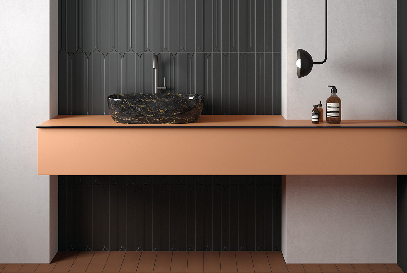 Элементы коллекции Hopp имеют один вид поверхности – матовую – и предлагаются в одном формате: 5×40 см, который имеет фактуру однотонной. Керамическая плитка из коллекции Hopp может быть использован для ванной, для гостиной, для коридора, для кухни и для стен.