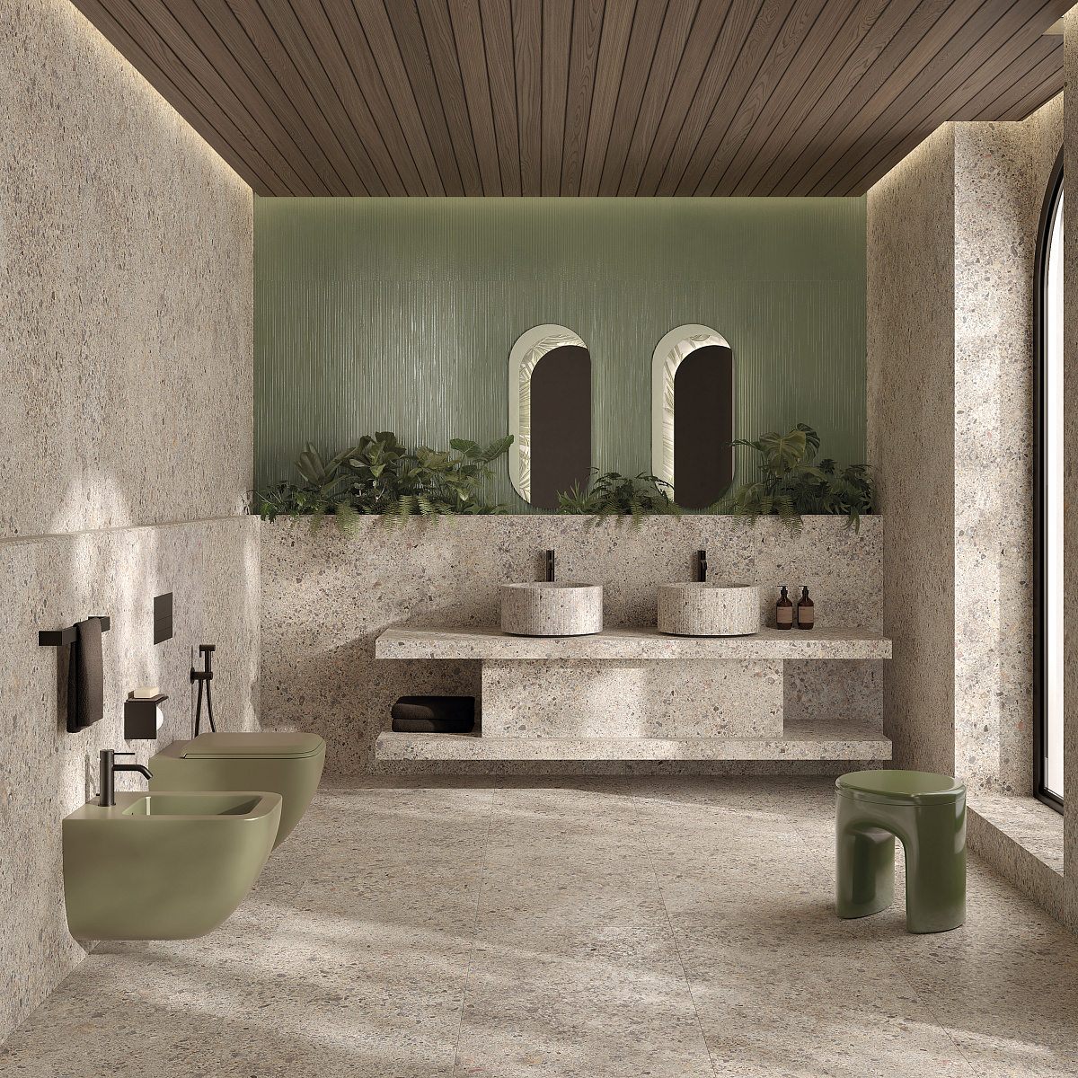 Элементы коллекции Materia Eclettica имеют один вид поверхности – матовую – и предлагаются в одном формате: 60×120 см, который имеет фактуру терраццо и камня. Керамогранит из коллекции Materia Eclettica может быть использован для бассейна, для ванной, для гостиной, для коридора, для кухни, для пола и для стен.