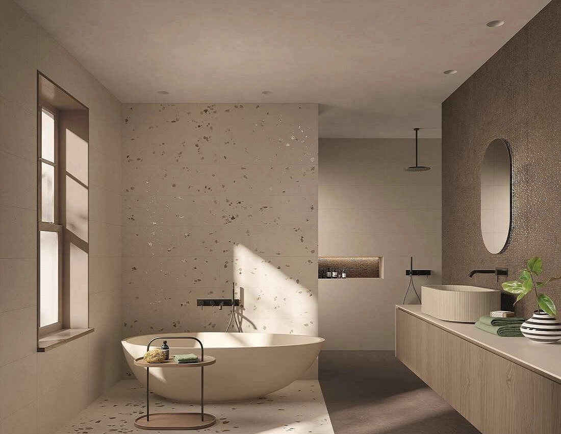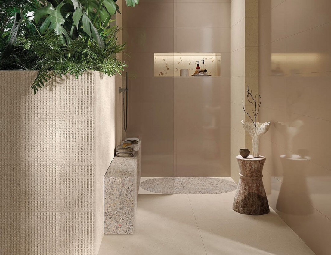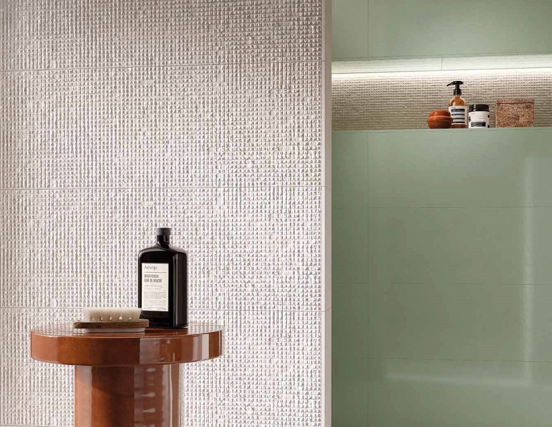 Элементы коллекции Materia Pura имеют три вида поверхности – матовую, фактурную и глянцевую – и предлагаются в двух форматах: 30.5×91.5 см и 80×80 см, которые имеют фактуру камня, терраццо и однотонной. Керамическая плитка и керамогранит из коллекции Materia Pura могут быть использованы для ванной, для гостиной, для коридора, для кухни, для пола и для стен.