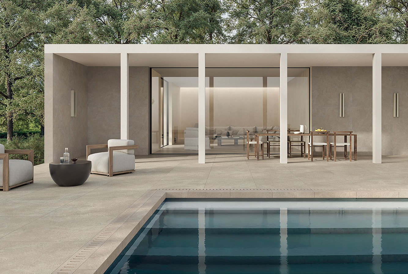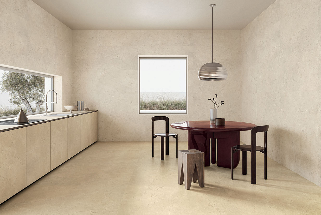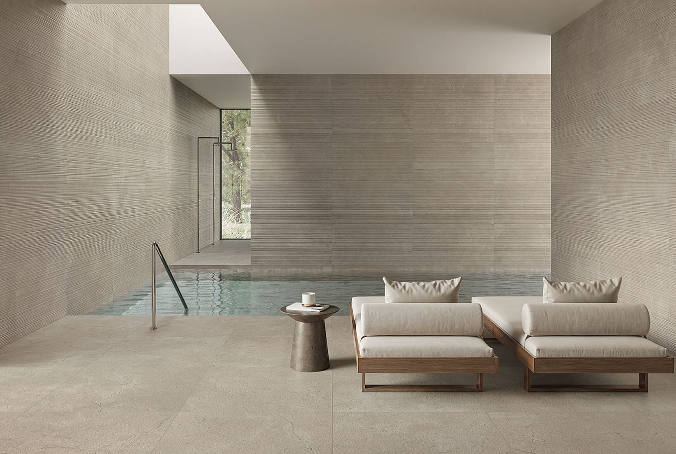 Элементы коллекции Calcis имеют два вида поверхности – матовую и фактурную – и предлагаются в одном формате: 60×120 см, который имеет фактуру мрамора и камня. Керамогранит из коллекции Calcis может быть использован для бассейна, для ванной, для гостиной, для коридора, для кухни, для пола, для стен и для улицы.