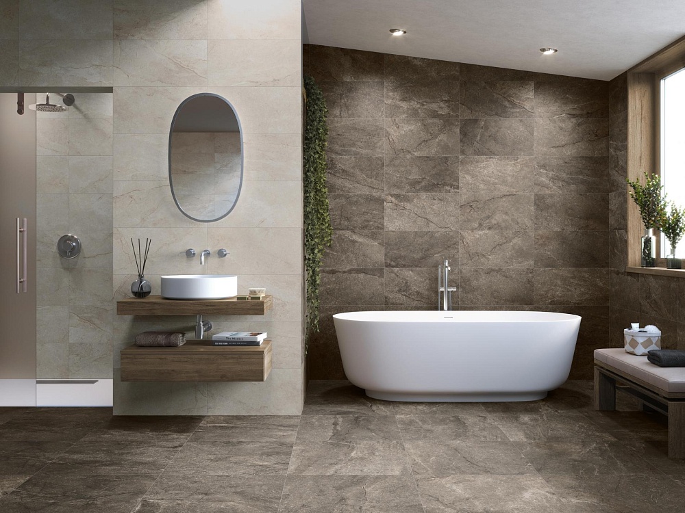 Элементы коллекции Wells имеют один вид поверхности – матовую – и предлагаются в одном формате: 60×120 см, который имеет фактуру камня. Керамогранит из коллекции Wells может быть использован для ванной, для гостиной, для коридора, для кухни, для пола и для стен.
